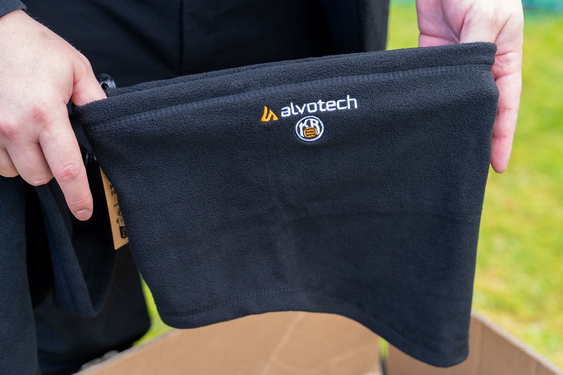 Áður en heim var haldið gaf Alvotech öllum börnum hálskraga sem hlýjar þeim á æfingum í vetur.